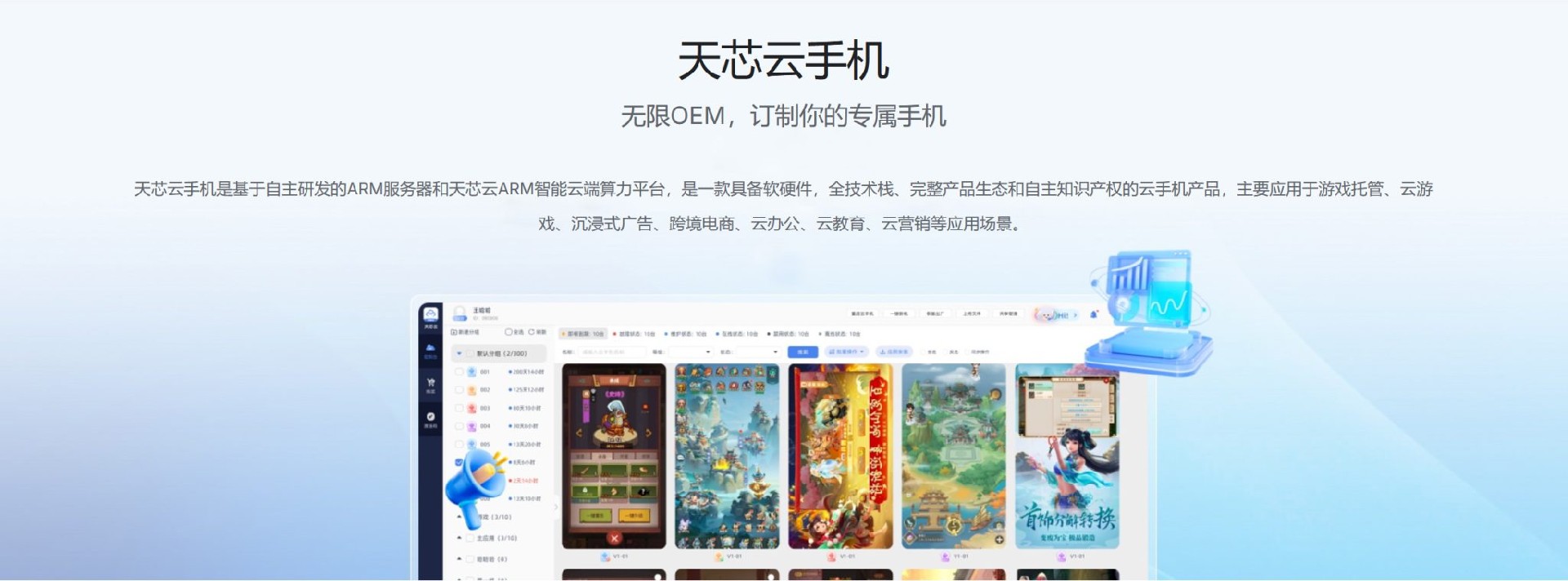 天芯云是行业最领先的云服务器厂商,专注于ARM架构服务器生产、原生安卓云系统研发和云手机平台搭建,为用户提供专业的解决方案。我们的主要业务有:ARM服务器销售,ARM服务器租赁,OEM私有化云手机部署,天芯云手机租赁。如果您需要量身定制自己的云手机品牌,我们将是最好的选择。欢迎广大游戏开发商,游戏工作室,云手机代理商,跨境电商和自媒体玩家咨询。云手机定制,云手机搭建,云手机部署,OEM云手机,游戏云手机,工作室云手机,跨境云手机,海外云手机,定制属于您自己的云手机!